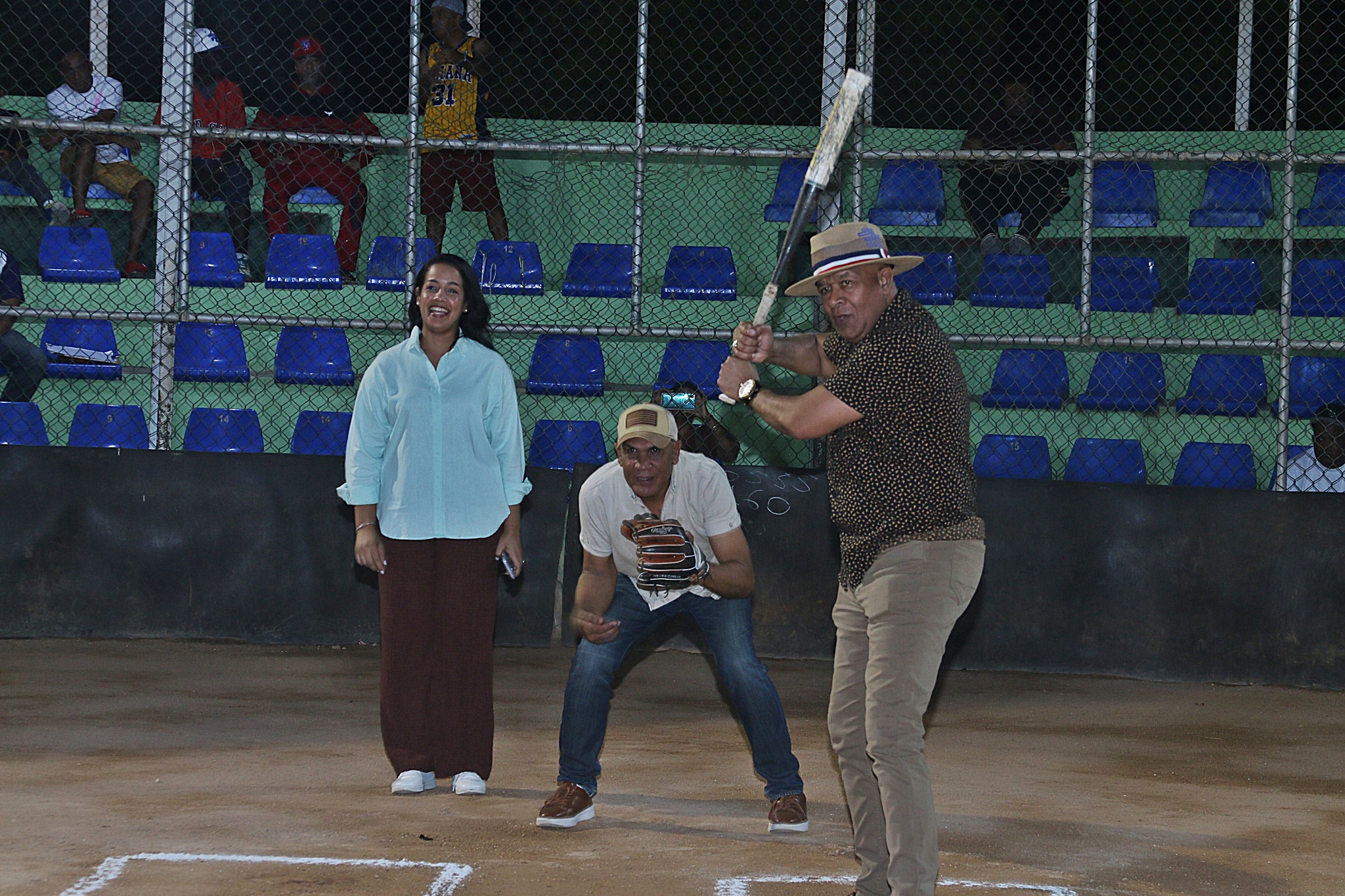 Durante el acto inaugural, el honor de realizar el primer swing simbólico recayó sobre Dolores Núñez, director de COOAROM, quien fungió como bateador de honor.